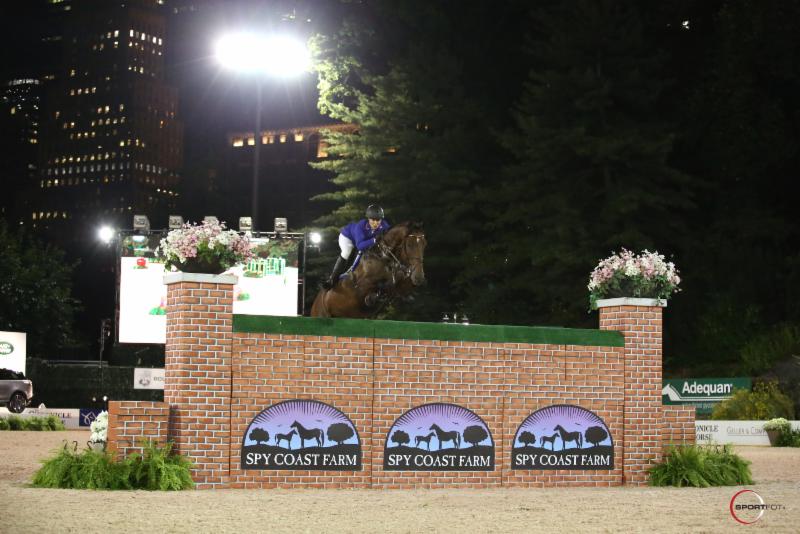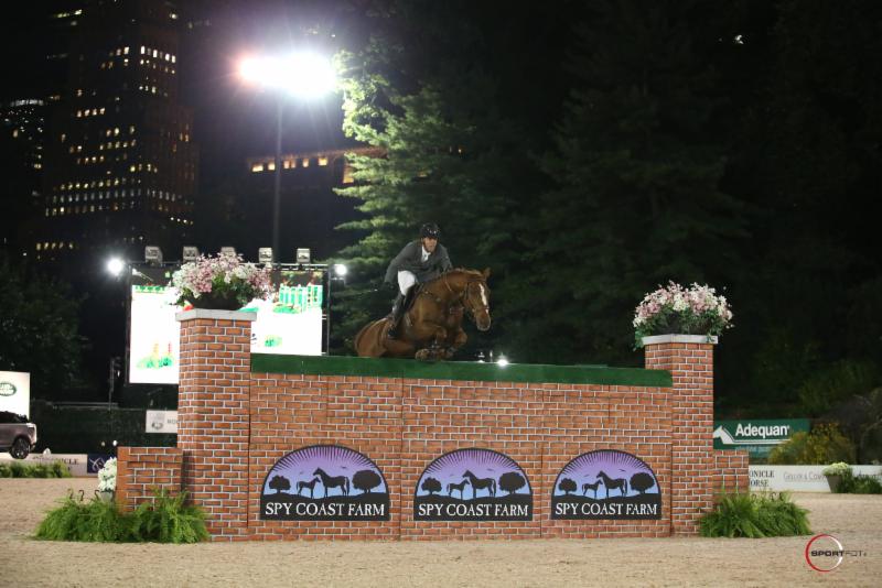 Veteran of the group, Todd Minikus, guided a young talent in his string in the class, also clearing the impressive wall at its top height. At only eight-years-old, VDL Excel looks to be a strong contender for the future and Minikus commented on the experience for both horse and rider under the lights in Central Park, while thanking class sponsor Spy Coast Farm for the opportunity.